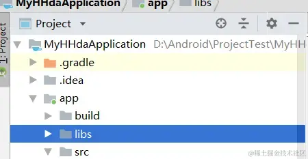 在【Projects】目录结构类型下,选择app下面的libs;