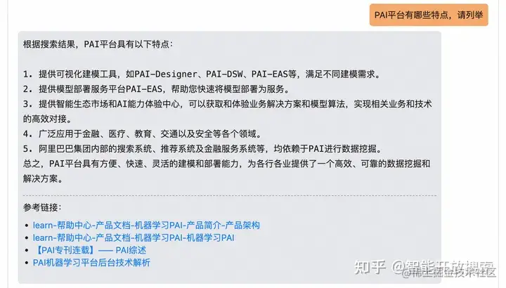 - 返回结果时,会基于用户业务数据,通过API输出指定Query下的相关搜索结果和模型生成的问答结果