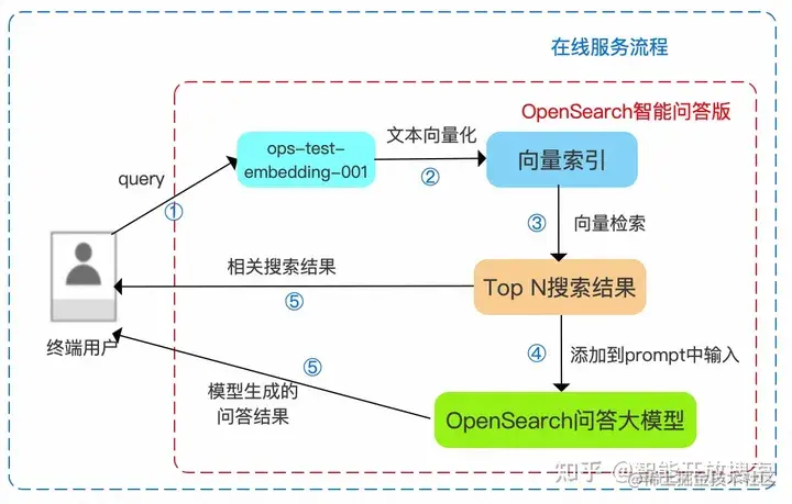 相比传统的搜索引擎,OpenSearch智能问答版在线服务架构变化非常大,主要区别有: