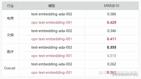 为了更加适配多语言以及多行业的问答搜索场景,OpenSearch算法团队基于自研语义向量大模型进行了定制训练与效果调优,并对模型效率进行了针对性的优化,以满足搜索场景实时性的需求,最终产出ops-text-embedding-001模型。我们在中文数据集Multi-CPR上做了验证,在检索相关性MRR@10等关键指标上的效果已经优于OpenAI的text-embedding-ada-002: