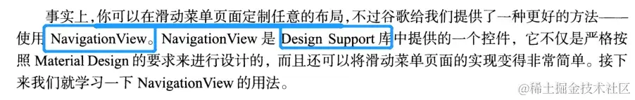 #####3/4.使用NavigationView 现在menu和headerLayout都准备好了,我们终于可以使用NavigationView了。 修改activitymam.xml中的代码,如下所示: ```