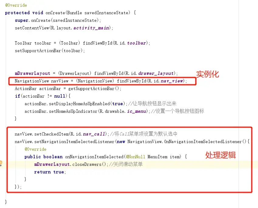 navView.setCheckedItem(R.id.nav_call);//将Call菜单项设置为默认选中