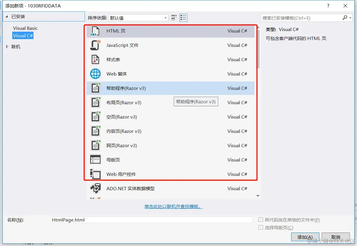 解决---VS-2015右键项目添加新项中没有web窗体等选项 凌川江雪 2023-06-06 105 阅读1分钟 刚装完的VS2015,打开网站之后右键项目添加新项时,没有web窗体,SQL Server数据库等选项,如: 解决方法:工具—>扩展和更新: 更新安装ASP.NET 工具(下图两个都装): 更新完了双击安装: 安装完就没毛病了: