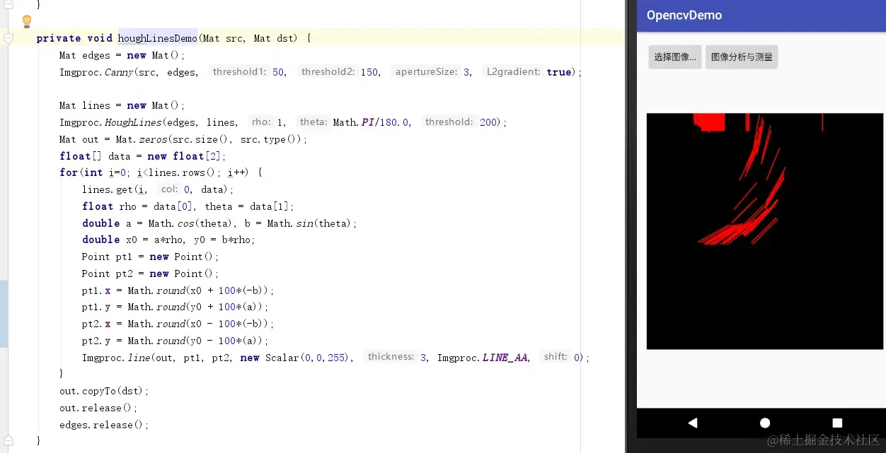 使用该API实现图像直线检测: