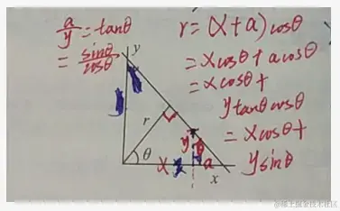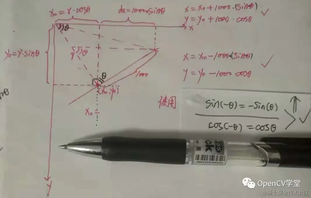 极坐标空间则变成求取另外两个参数(r,θ),r 和 θ之间的关系可以表示为: (公式的来源运算过程见上图)
