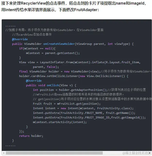 onCreateViewHolder中编写(下面是例程):接收并处理:
