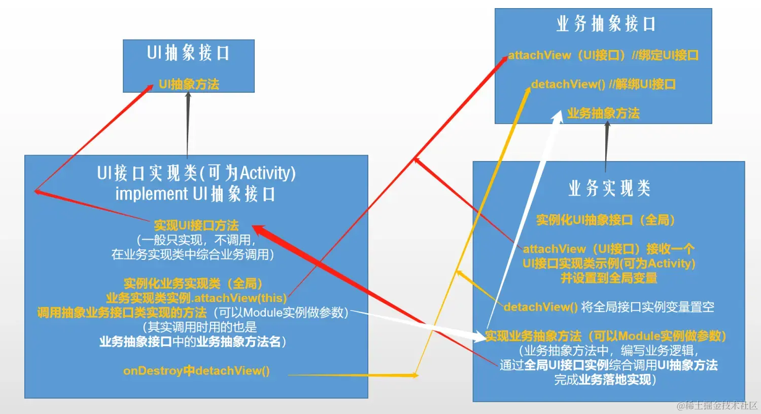 类比于Android系统的Click监听机制, 同样的,也可以类比于MVP设计模式: (下图详情来自文章: Android实战 | 详解MVC、MVP模式并分别实现登录界面案例)