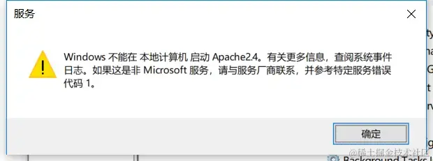Windows 不能在本地计算机启动apache2.4。有关更多信息,查阅系统事件日志。如果这是非Microsoft服务,请与服务厂商联系,并参考特定服务错误代码1。