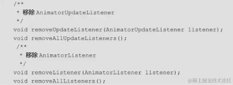 removeListener(AnimatorListener listener)函数 用于在Animator中移除指定的监听器;