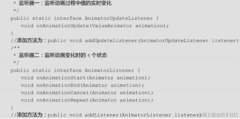 - animator.addUpdateListener,用于监听动画过程中值的实时变化。