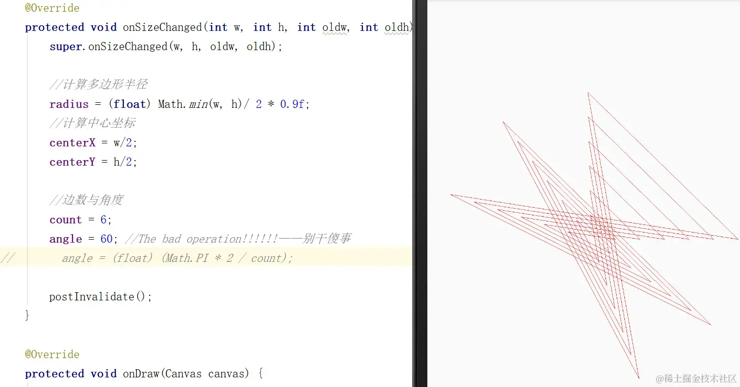 count = 6;则每个角的度数为360 / 6 = 60度, 不过这里注意不要写angle = 60;…… 不然……悲剧如下: -
