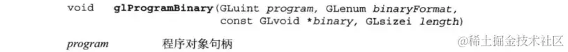程序二进制代码之后, 可以用glProgramBinary将其保存到文件系统, 或者将程序二进制代码读回OpenGL ES实现: