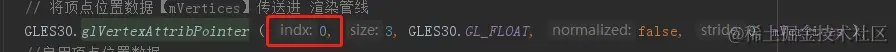 使用GLES30.glVertexAttribPointer ();将顶点数据加载到 顶点变量值vPosition对应的输入属性位置 0上;