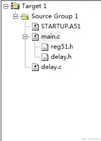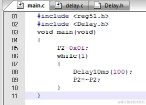 ctrl+N 创建三个文件(main.c/delay.c/Delay.h),这里debug一下头文件和源文件的联编,实际上也可以将Delay.h以及delay.c的内容放进main.c中: