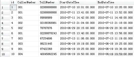insert into T_CallRecords(Id,CallerNumber,TellNumber,StartDateTime,EndDateTIme)
