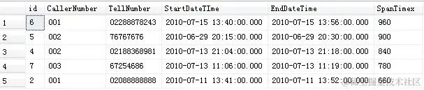 values(1,'001','02088888888','2010-7-10 10:01','2010-7-10 10:05');