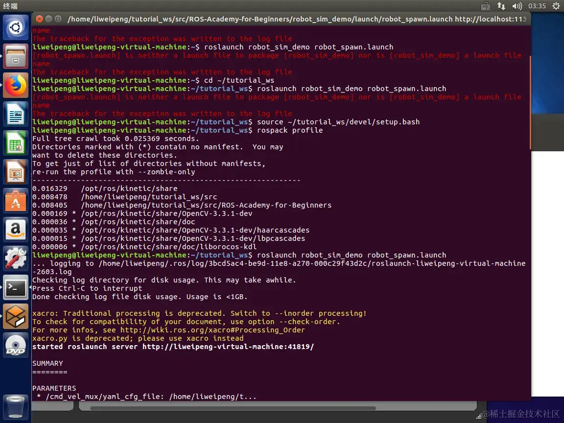 started roslaunch server http://liweipeng-virtual-machine:41819/