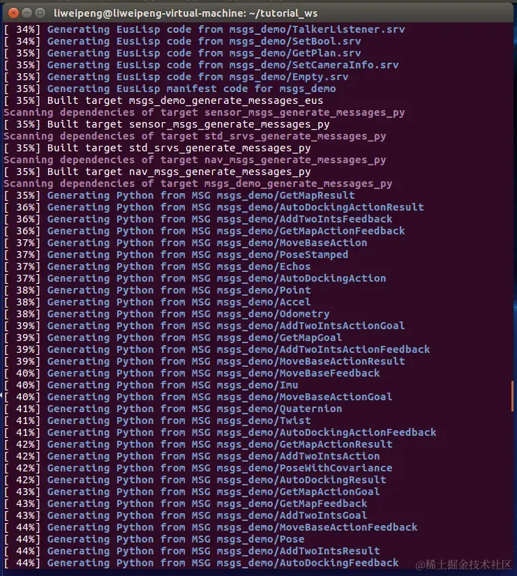 liweipeng@liweipeng-virtual-machine:~/tutorial_ws$ source ~/tutorial_ws/devel/setup.bash