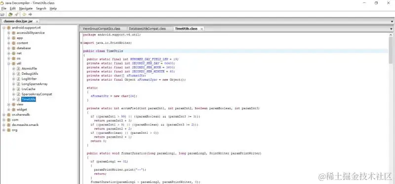 选择file-open file,并选择刚刚生成的classes-dex2jar.jar文件,即可查看相关源代码: