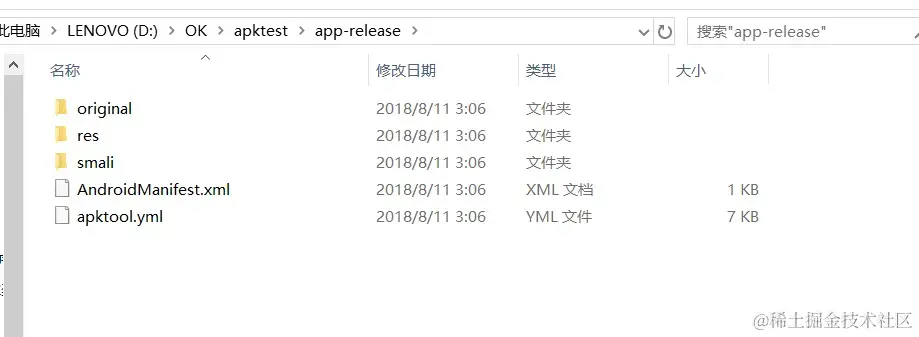 然后使用普通解压工具(如WinRAR、360解压等)直接解压app-release.apk,可以得到文件夹app-release,工作目录如下: