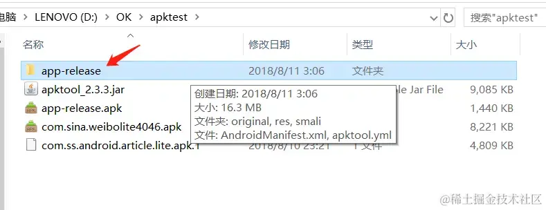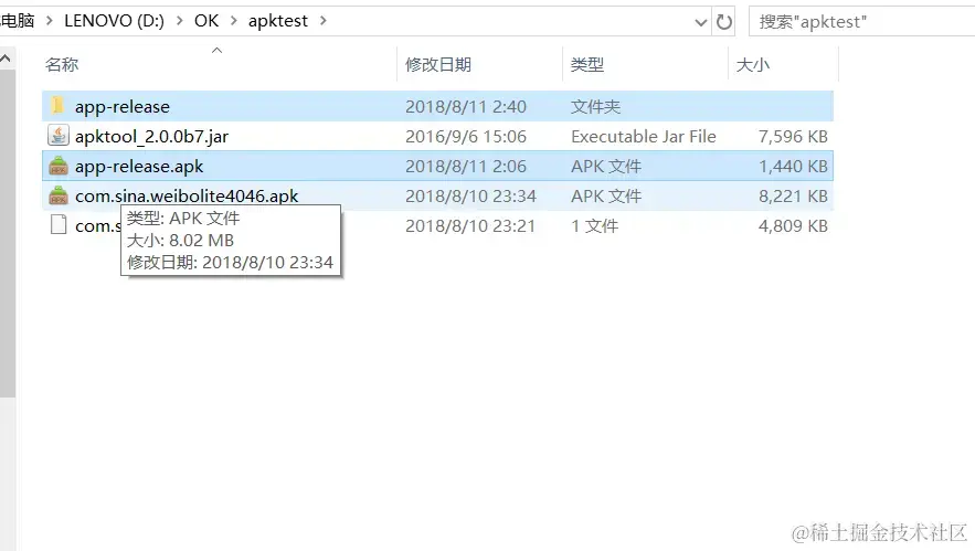 (可以下载一个软件的安装包来做实验,或者自行用Android studio通过签名生成apk文件(对签名生成apk不了解的同学,可以戳一下这里详细了解一下);这里用的就是撰写本文时用Android studio通过签名生成的apk文件app-release.apk),