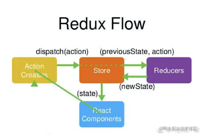当借阅人(React Components)要借书时,对管理员(Store)说”我要借xx书”(Action),管理员就在借阅记录(Reducers)上找出来。然后将书(state)给借阅人(React Components)。