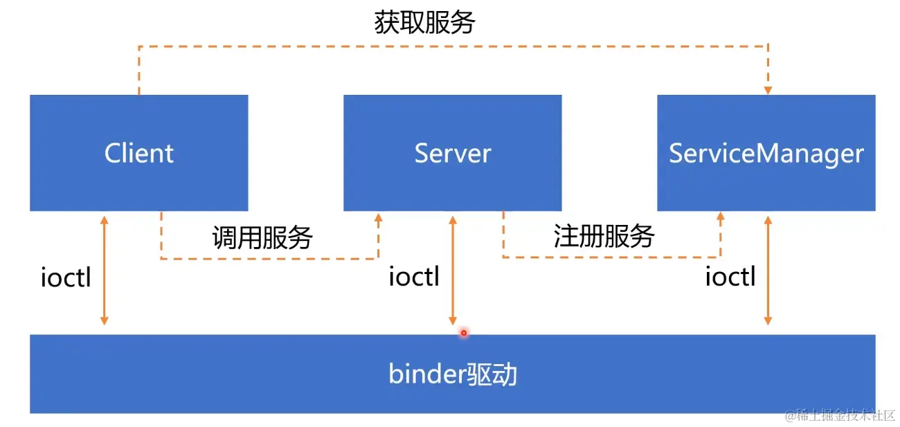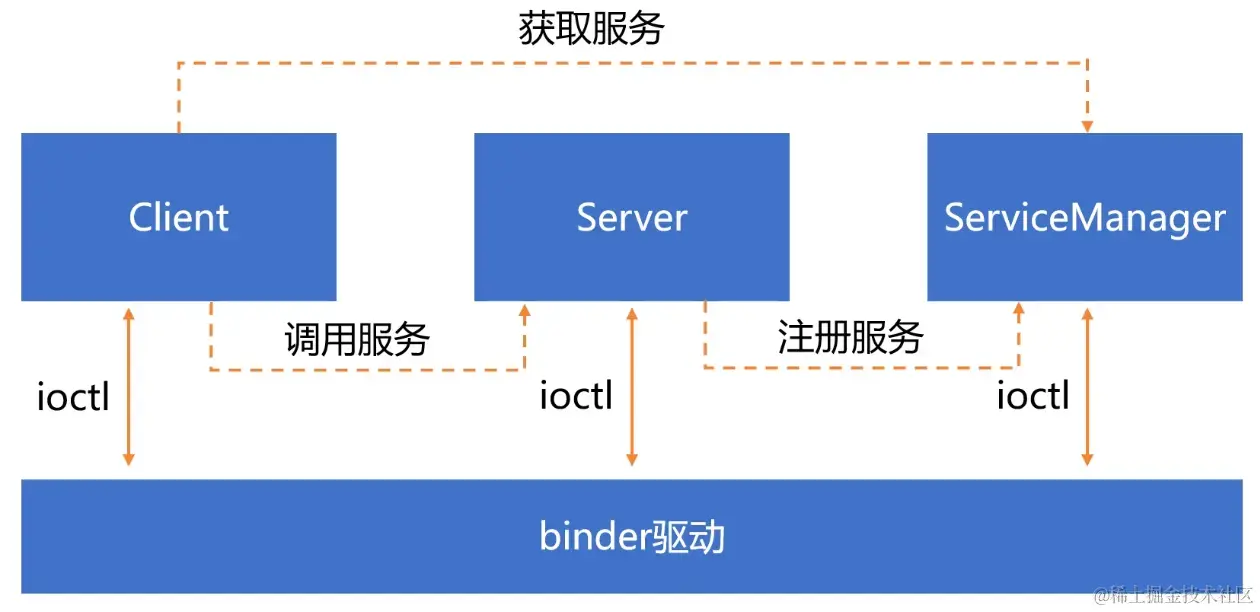 Client是应用进程; Server是系统服务,可能跑在SystemService进程,也可能是在单独的进程; ServiceManager是单独的系统进程; 这里不论哪个进程,它们在启动的时候, 第一件事,都是要先启动binder机制,这个是binder通信的前提;