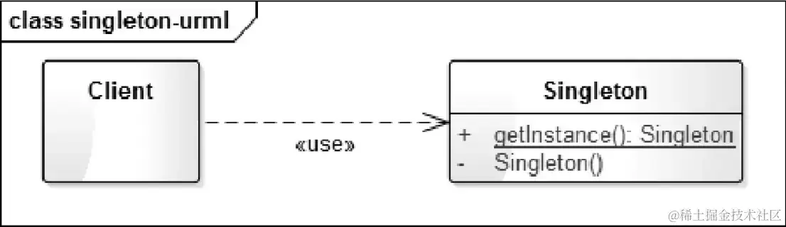 (1)Client——高层客户端; (2)Singleton——单例类。