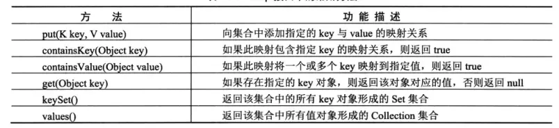 - Map接口中同样提供了集合的常用方法,除此之外还包括如下表所示的常用方法: