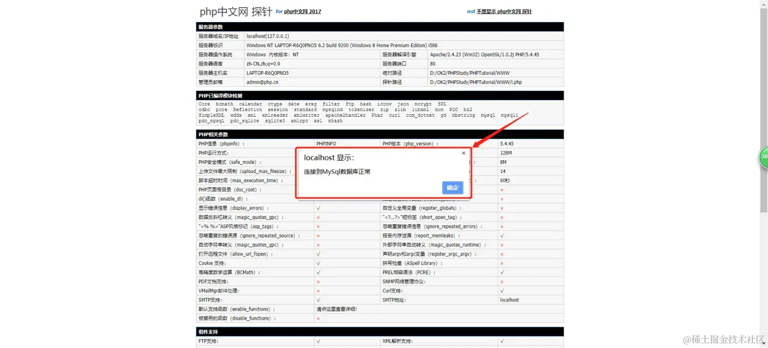 之后点击MySQL检测,须臾之后弹出对话框如下: