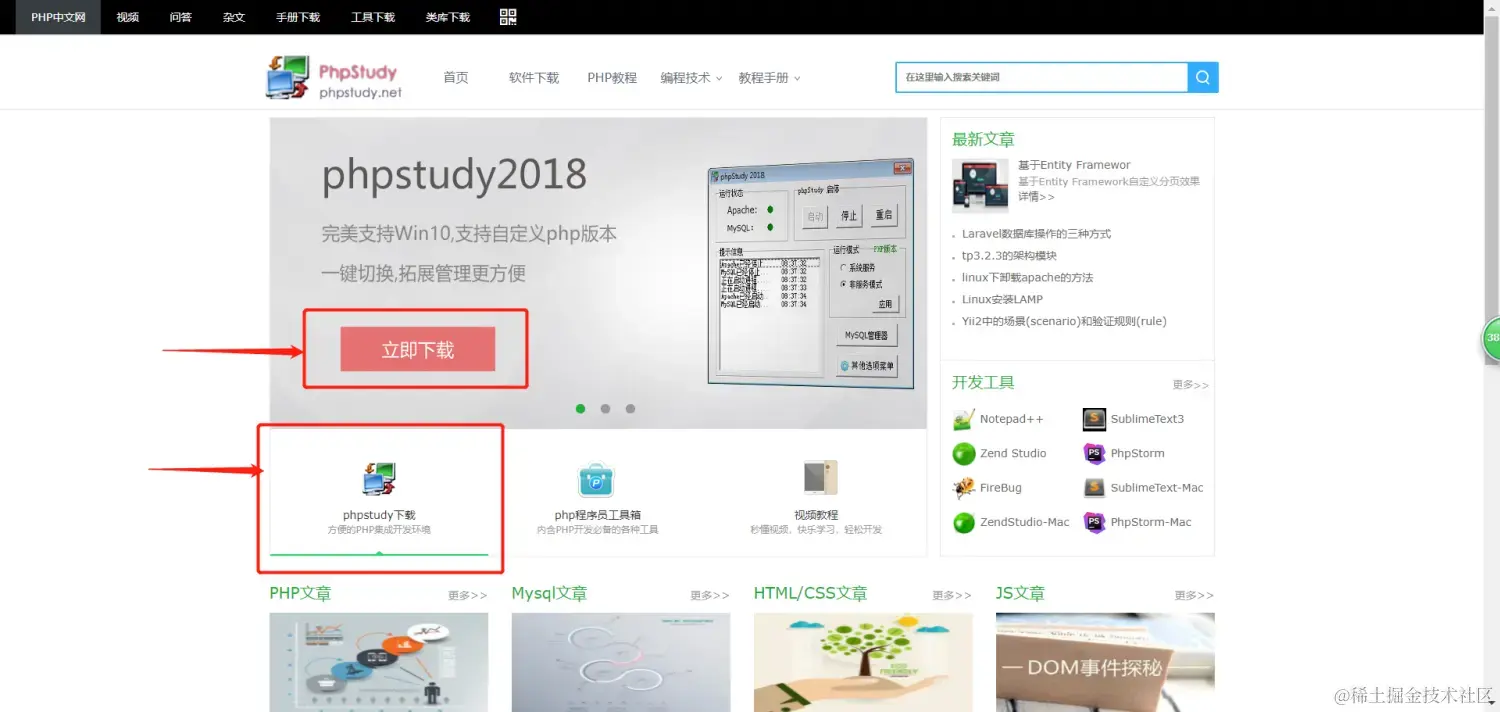 我们可以到 phpstudy官网 下载集成环境:题外话:个人觉得这是一个挺好的网站,资料挺多,囊括视频和电子文档,值得我们接触一下。