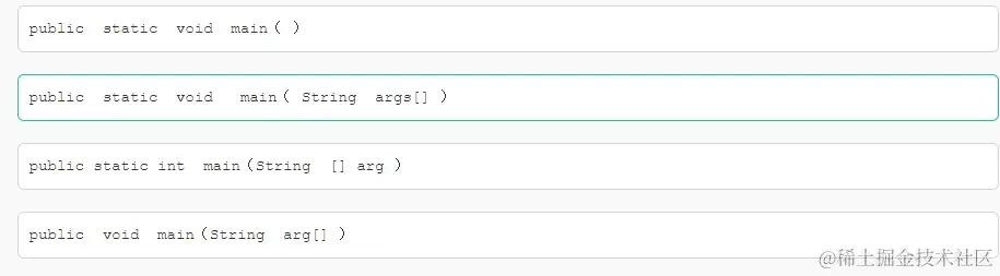 - main 方法是 Java Application 程序执行的入口点,以下描述哪项是合法的()。