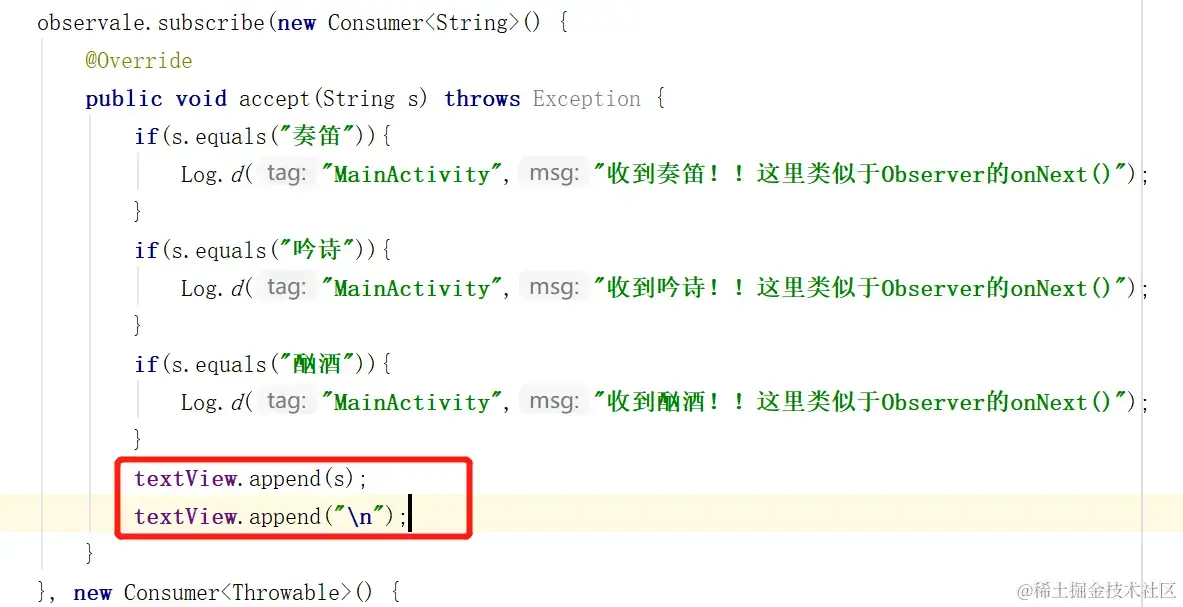 Log.d("MainActivity","收到奏笛!!这里类似于Observer的onNext()");