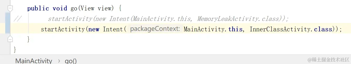 * 下面的 Thread 匿名内部类实例 引用着一个 InnerClassActivity 实例