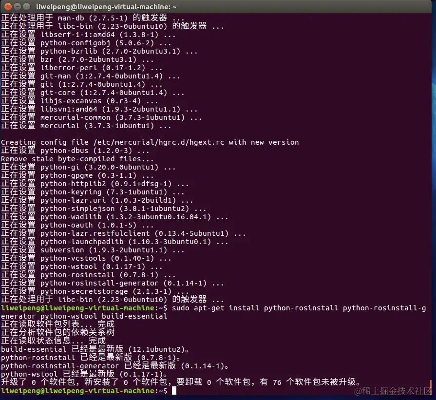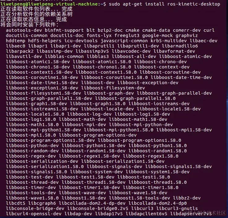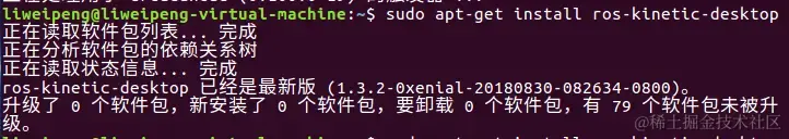 运行了一次sudo apt-get install ros-kinetic-desktop,第二次运行: