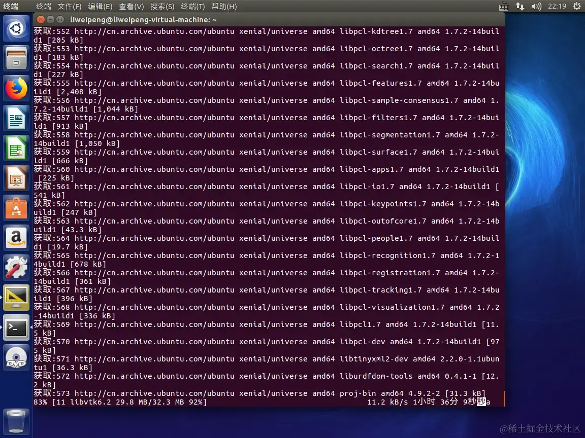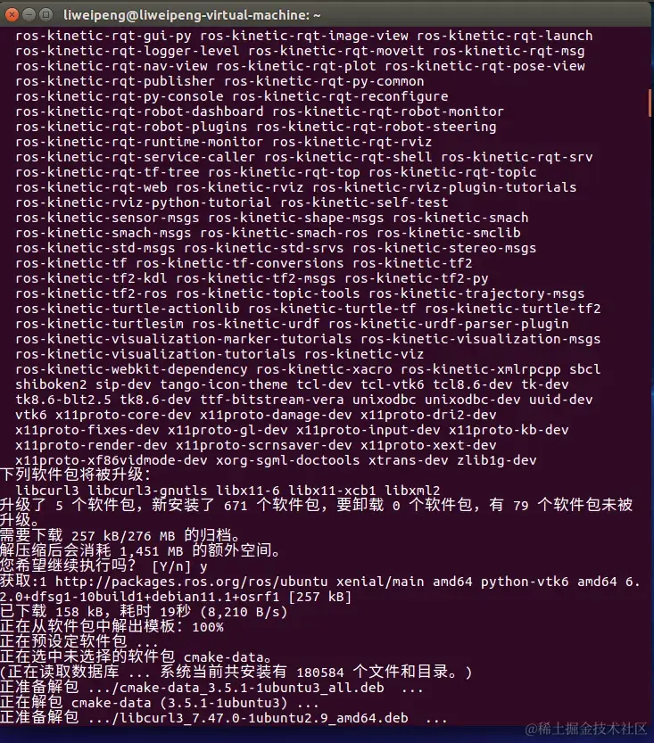 第三次运行sudo apt-get install ros-kinetic-desktop-full: