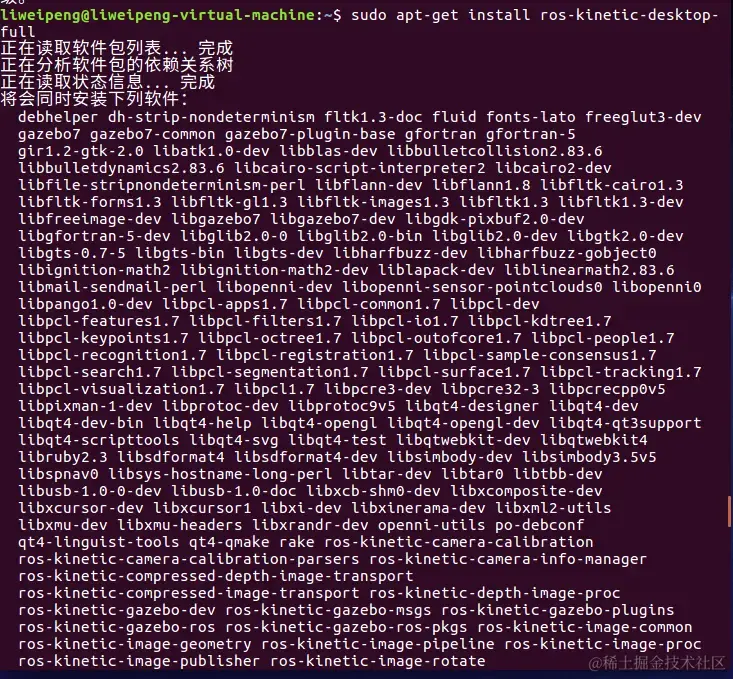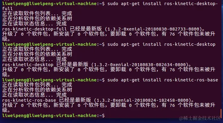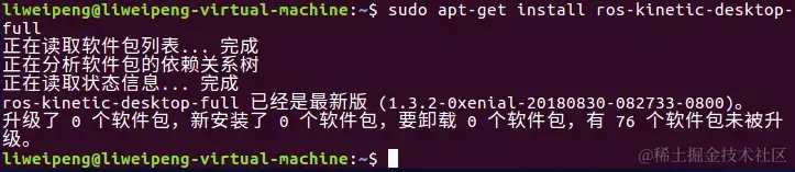 运行了一次sudo apt-get install ros-kinetic-desktop-full,第二次运行: