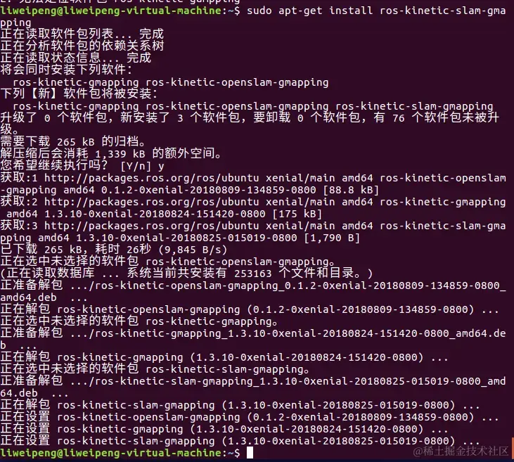 运行sudo apt-get install ros-kinetic-slam-gmapping: