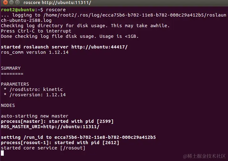 解决方案:www.cnblogs.com/fuhang/p/96… 即输入下面代码,再次运行roscore解决: