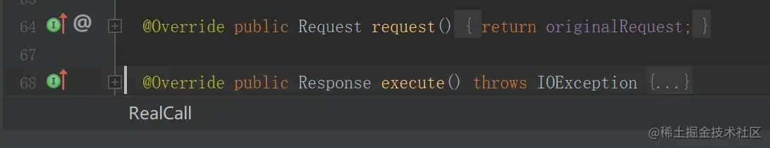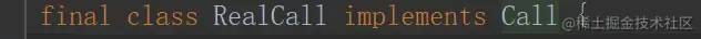 execute()和enqueue()在Call中只是作为接口方法被定义, 而RealCall类实现了Call接口以及Call接口中的方法,包括execute()和enqueue():