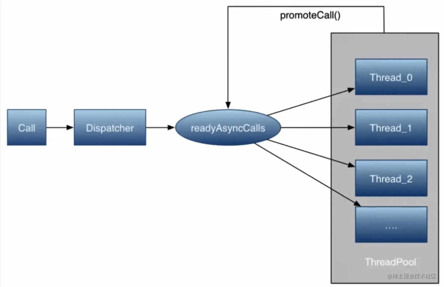runningAsyncCalls存储正在运行的异步任务,主要作用是判断并发请求的数量,readyAsyncCalls表示缓存等待中的请求的队列: