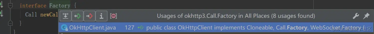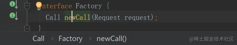 - newCall() 实际上是 Call接口中 Factory接口 的接口方法,