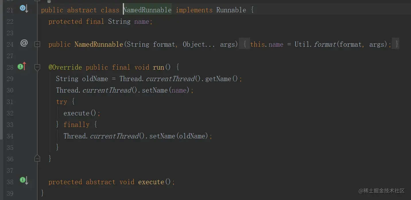 run()的内容,AsyncCall源码如上,可以发现这里没有run()的内容, 而上面也说过了,AsyncCall继承自NameRunnable, 接着可以到NameRunnable中去找:到这就找到