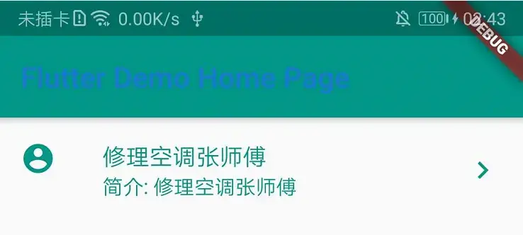 @override Widget build(BuildContext context) { return ListView( // 列表滑动的方向 scrollDirection: Axis.vertical, // scrollDirection: Axis.horizontal, children: [ // Text( // 'You have pushed the button this many times:', // ), // // new Divider(height: 1.0, color: Colors.grey), // // new VerticalDivider(width: 1.0, color: Colors.grey), // Text( // '{widget.counter}', // style: Theme.of(context).textTheme.display1, // ), // new Divider(height: 1.0, color: Colors.grey), // new VerticalDivider(width: 1.0, color: Colors.grey), ListTile( //预览小图标 leading: new Icon(Icons.account_circle), //标题 title: new Text(results == null ? data : results), //子标题 subtitle: new Text('简介: ' + (results2 == null ? data : results2)), // 右边的图标 trailing: new Icon(Icons.chevron_right), onTap: () { print('点击事件:点击了 ListTile ==== title为:$data');