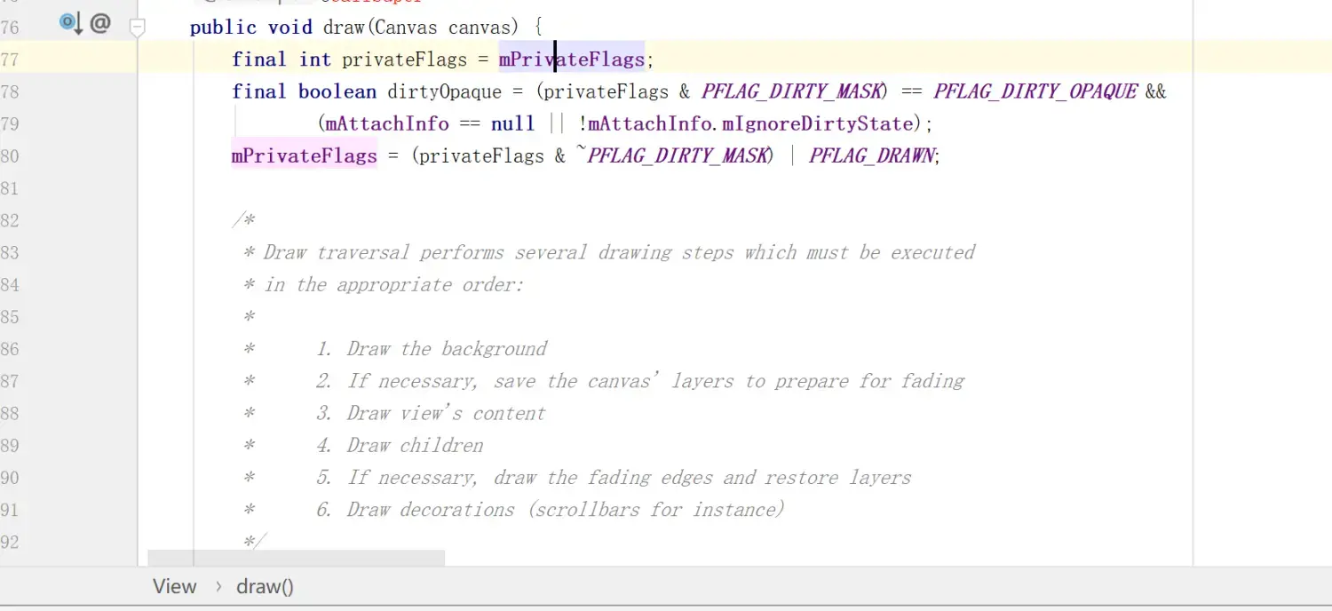 而`setFlags()`可以根据形参变动`mPrivateFlags`;【上面提到过】**