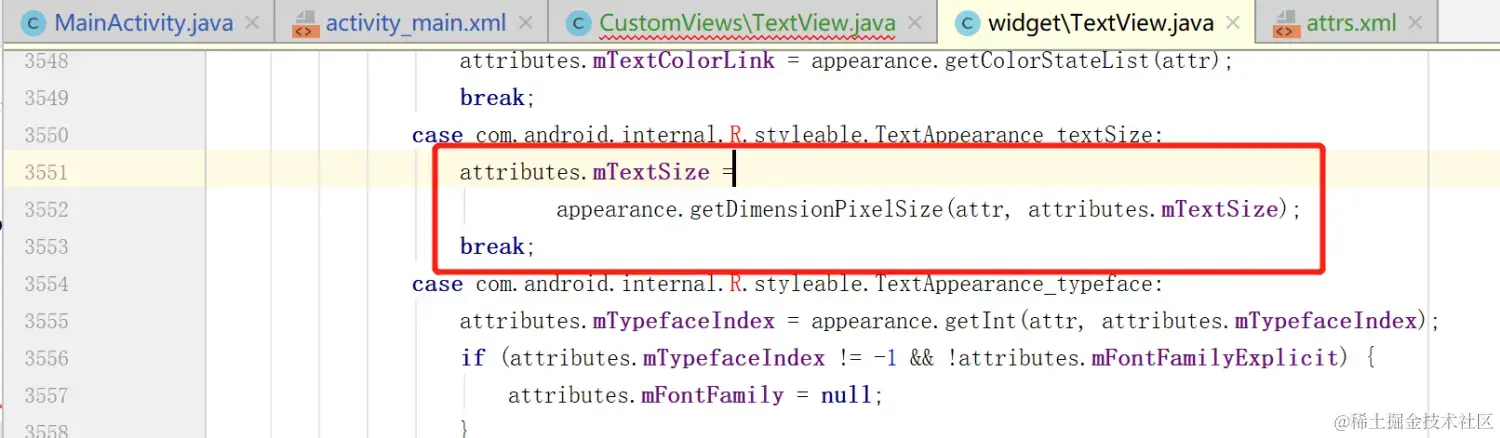 <declare-styleable name="TextView">