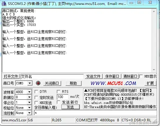 编译之后,打开烧录软件烧录,然后打开串口通信助手进行调试: