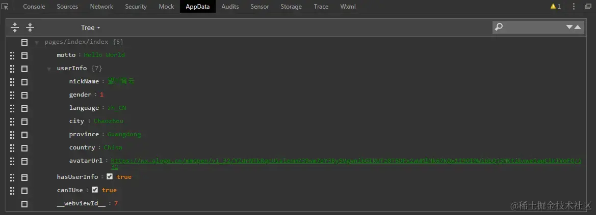 可以在AppData面板中编辑数据, 编辑后数据会及时反馈到界面上: