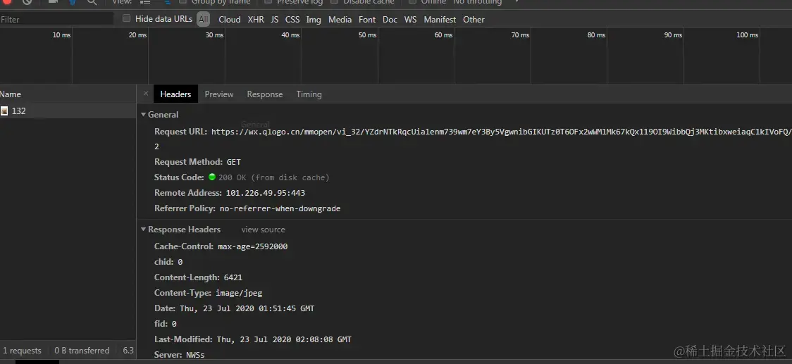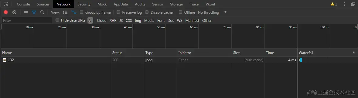 NetWork面板 用于观察和显示网路请求request和socket的情况; 通过这个面板可以调试网络请求(如请求格式、响应数据的格式、请求状态、用时等信息);