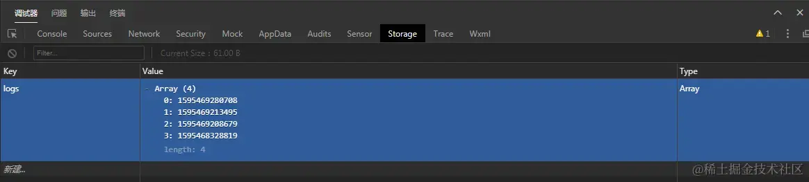 Storage面板 用于显示当前项目使用本地存储的情况, 在小程序中可以用